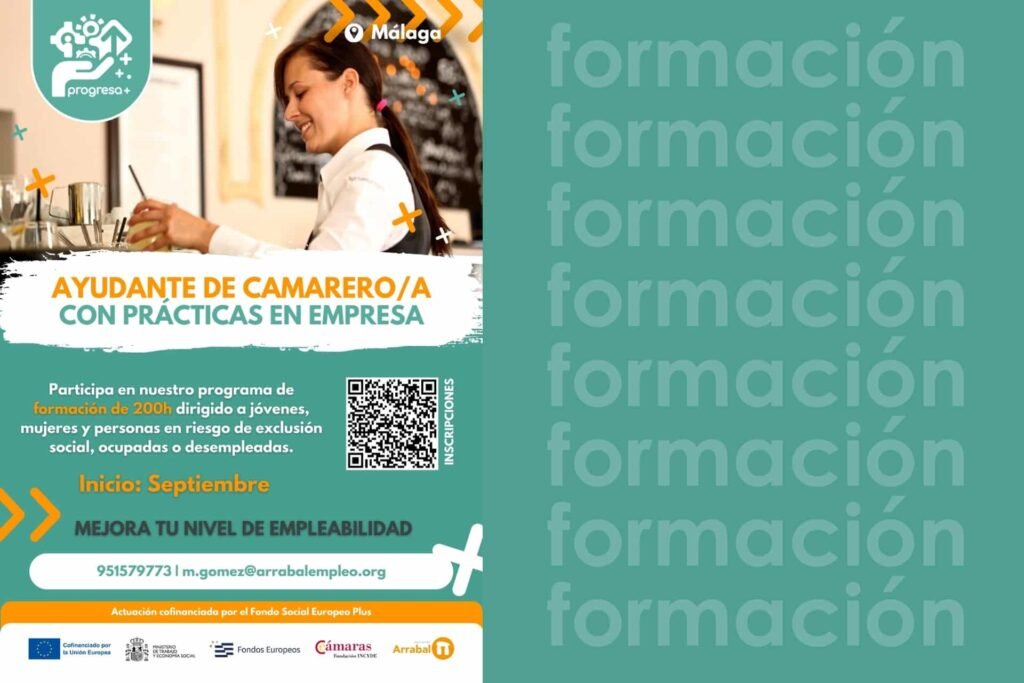 👉 FORMACIÓN: Ayudante de Camarero/a con prácticas en empresa en Málaga, enmarcado en el programa Progresa+.